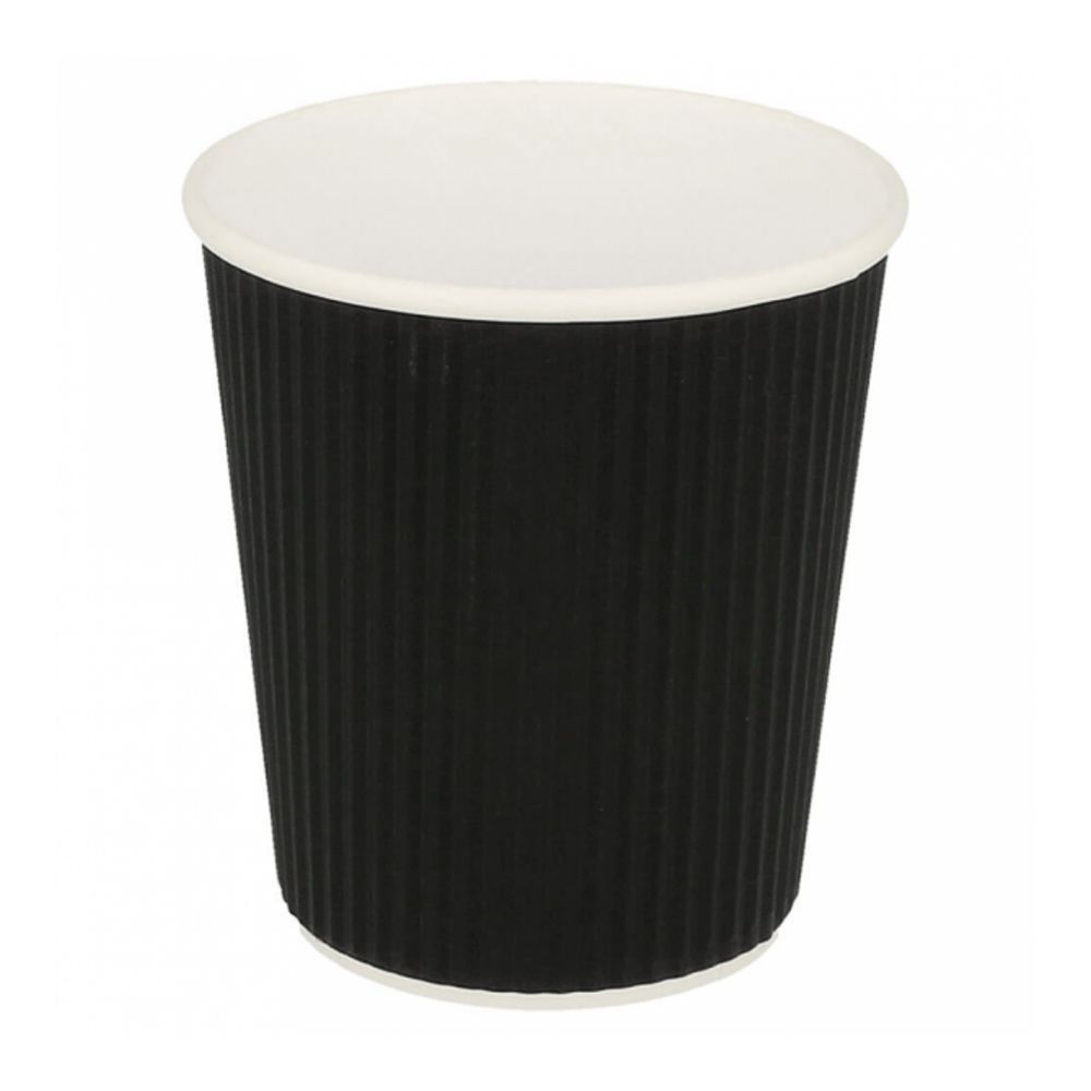 Купить Стакан с двойныйми стенками для горячего,180 мл, (1упаковка= 25 шт), черный гофрированный картон